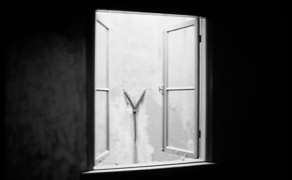 Dans un plan qui ne saurait moins se soustraire à l’esprit de celui-ci et à l’image de l’âme à laquelle elle nous renvoie, Van der Keuken repense et (ré)organise tout son travail dans L’Esprit du Temps par un angle, un regard, en contre-jour et par la mise-en-scène d’une vision extraordinaire des sons et de l’image. Le dernier plan du film est une fenêtre ouverte donnant sur cour et, de notre point de vue, sur un tirant en forme « Y », dans le mur blanc du bâtiment d’en face. Nous sommes à mi-hauteur, légèrement excentré par rapport à la fenêtre mais étrangement de face devant ce tirant aux bras levés. L’image est fixe, le son ne l’est pas. On entend de la musique à la radio, des bruits indistincts et surtout le son d’un rasoir électrique. Un rasoir au travail, qui rase et qui continue de raser. La fenêtre est un gros plan de plus en plus gros car le dispositif nous en rapproche, et le tirant bientôt passe du dehors au dedans. La durée du plan témoigne de la durabilité de l’espace dans le cadre, de cet espace montrant le vide, plaçant bientôt la vie entièrement « devant un mur », au milieu duquel se déploie encore ce mystère : quelle est donc cette structure que soutient ce tirant ? Les battants ouverts laissent entrer et sortir allègrement l’air, les sons et les images de ses sons, et Van der Keuken nous fait passer de l’intérieur à l’extérieur, et vice-versa, comme dans une boucle. On entend une porte qui se ferme, quelques pas et enfin des cloches d’église : est-ce que l’espace essaye de nous raconter son temps ? Ce plan est encore un autre espace « intermédiaire » qui témoigne encore et toujours d’une absence fondamentale, de la chose qui est perdue mais depuis toujours ; mais il est vrai que les choses à présent voltigent dans le cadre et que nous percevons tout un pan de l’invisible du temps (ou du visible de l’esprit) que le dispositif de Van der Keuken a, sans relâche, tenté d’apprivoiser et réussit à libérer pour notre regard. Alors, la caméra continue de fixer encore et toujours cette fenêtre ouverte qui nous colle à présent contre un mur, et contre ce tirant qui nous fixera jusqu’au bout. Et c’est ainsi que les images de Van der Keuken raconte une dernière fois l’histoire du bruit qui court en son temps : la jeunesse n’est plus très loin.